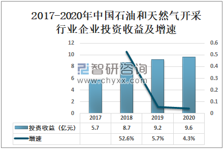 2017-2020年中国石油和天然气开采行业企业投资收益及增速