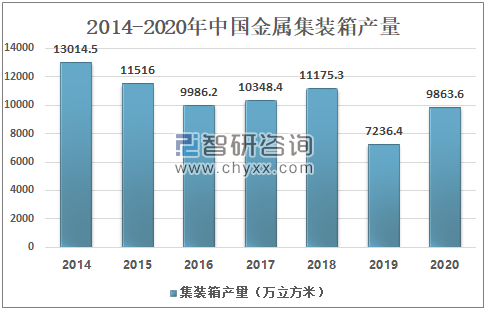从2020年下半年开始,中国海运市场就在出口的强劲复苏之下迎来爆发式增长,国内多个港口出现集装箱需求暴涨。加之2020年12月,国家商务部发文支持集装箱行业扩大产能,提高运力供需投放。政策的红利又为集装箱制造业的发展注入了加速的“燃料”,国内集装箱龙头企业都进入订单暴增的上升通道。2020年中国金属集装箱产量为9863.6万立方米,较2019年的7236.4万立方米同比增长36.31%。