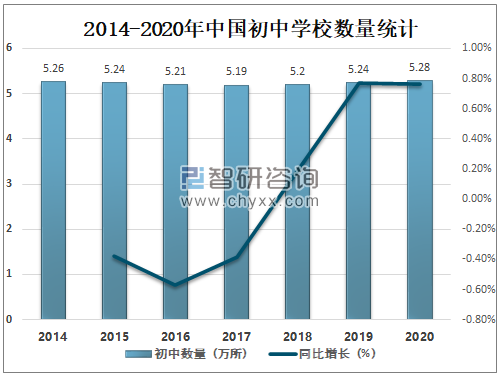 义务教育一直是我国教育改革的重中之重,因为义务教育质量事关国民素质和社会公平。而初中处于我国九年义务教育的后半阶段,是小学和高中之间的重要过渡期,因此办好初中阶段教育,实现初中学校的高品质发展,对发展优质的基础教育和促进学生的健康成长具有十分重要的意义。自2018年起初中学校数量逐年增加,2020年中国共有初中5.28万所,较2019年增加了0.04万所,同比增长0.76%。