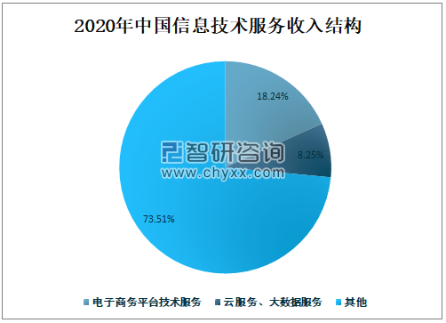 2020年中国电子商务平台技术服务收入占软件业务总收入的18.24%;云服务、大数据服务服务收入占软件业务总收入的8.25%。