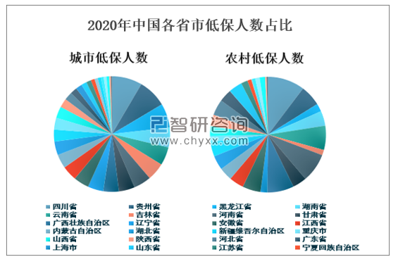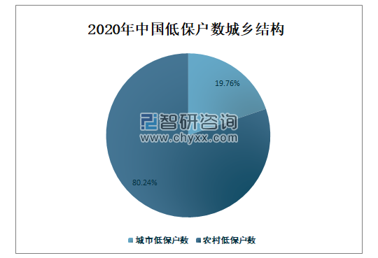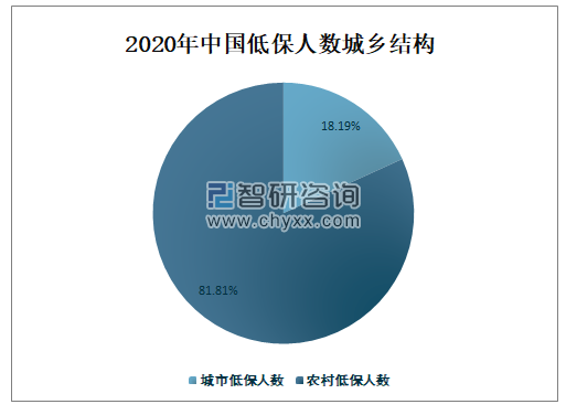 中国低保人数主要集资红在农村,2020年中国农村低保人数占全国低保总人数的81.81%,占比非常大;城市低保人数占全国低保总人数的18.19%。