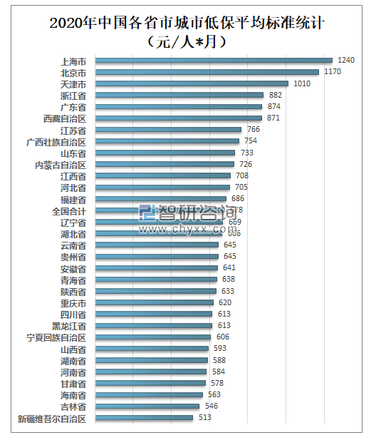 2020年上海市城市低保平均标准为1240元/人*月,居全国最高水平;北京市城市低保平均标准为1170元/人*月;天津市城市低保平均标准为1010元/人*月。