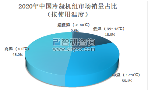 2020年中国冷凝机组市场销量占比(按使用温度)