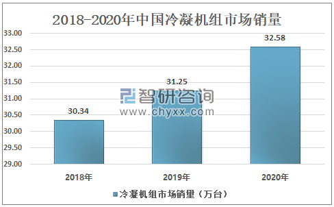 速冻设备、储藏冷库均需要配备制冷系统,由制冷压缩机、冷凝器和必备的辅助设备组成制冷压缩冷凝机组的需求随着冷链的发展也大幅增长。2020年中国冷凝机组市场销量为32.58万台,较2019年的31.25万台同比增长4.3%。
