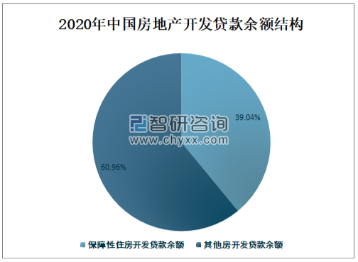 2020年中国保障性住房开发贷款余额占房地产开发贷款余额的39.04%;其他房开发贷款余额占房地产开发贷款余额的60.96%。
