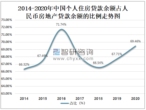 2014-2020年中国个人住房贷款余额占人民币房地产贷款余额的比例走势图