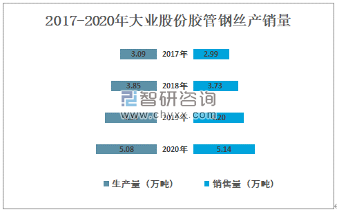 2017-2020年大业股份胶管钢丝产销量