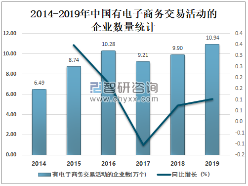 2014-2019年中国有电子商务交易活动的企业数量统计
