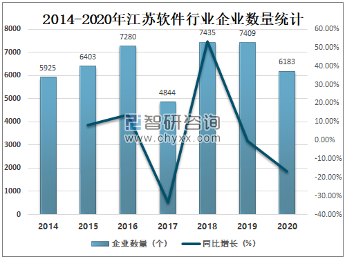 2014-2020年江苏软件行业企业数量统计