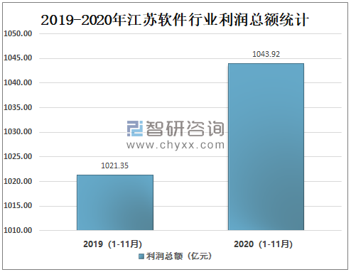 江苏软件产业经过多年的发展,如今已经进入全面发展期,软件产业发展态势良好。2020年1-11月江苏软件行业利润总额达1043.92亿元,较2019年同期增加了22.57亿元。