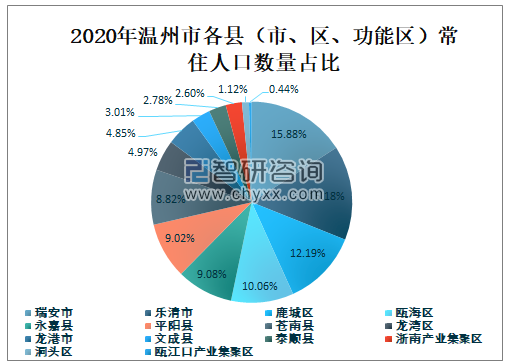 2020年温州市各县(市、区、功能区)常住人口数量占比