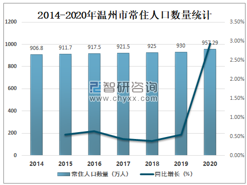 2014-2020年温州市常住人口数量统计