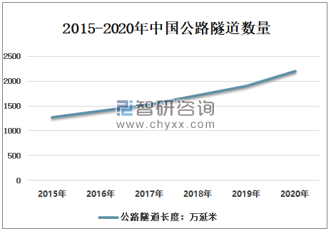 智研咨询发布的《2021-2027年中国公路隧道行业市场全景调查及投资前景分析报告》显示:近年来,随着我国的交通行业的快速发展,公路隧道工程建设越来越多,2015-2020年中国公路隧道数量呈逐年增长趋势,2020年中国公路隧道数量21316处,同比增长11.80%。