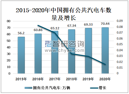 2015-2020年中国拥有公共汽电车数量呈增长趋势,增幅放缓,2020年中国拥有公共汽电车70.44万辆,同比增长1.60%,较2019年下降1.36个百分点。