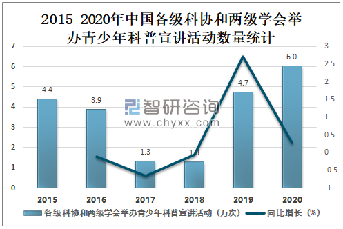 现阶段,青少年科技教育越来越受关注,科技教育工作是提升青少年科学精神、创新能力的重要举措,直接关系着社会的进步与发展。2020年中国各级科协和两级学会举办青少年科普宣讲活动6.万次,较2019年增加了1.29万次,同比增长27.21%。
