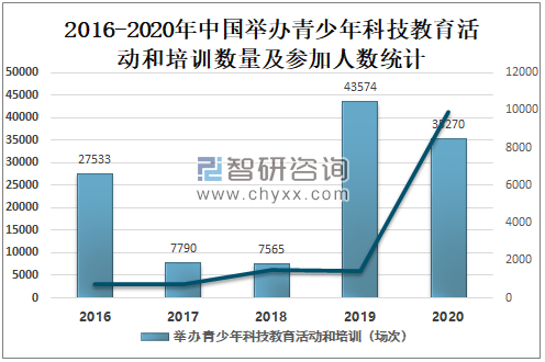 2016-2020年中国举办青少年科技教育活动和培训数量及参加人数统计