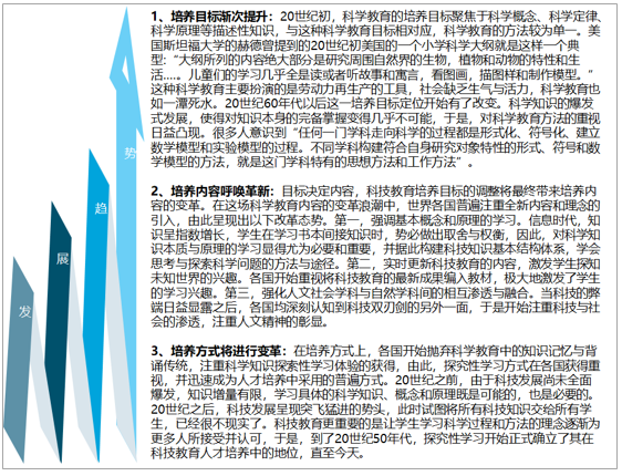 科技发展步伐决定社会进步速度,从蒸汽时代到信息时代的历史演变,印证了科技及科技教育在其中所扮演的重要角色。在洞悉国际青少年科技教育特征的基础之上,我们可以准确把握其发展规律,掌握未来发展主动权。