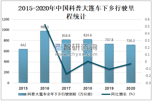 2015-2020年中国科普大篷车下乡行驶里程统计