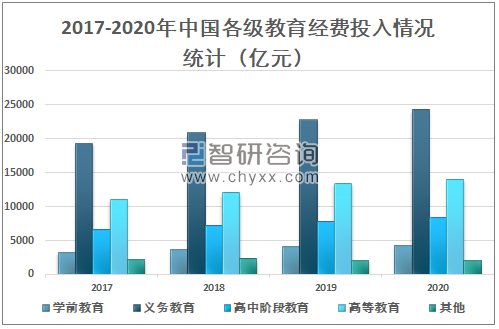 2017-2020年中国各级教育经费投入情况统计(亿元)