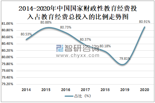 2014-2020年中国国家财政性教育经费投入占教育经费总投入的比例走势图