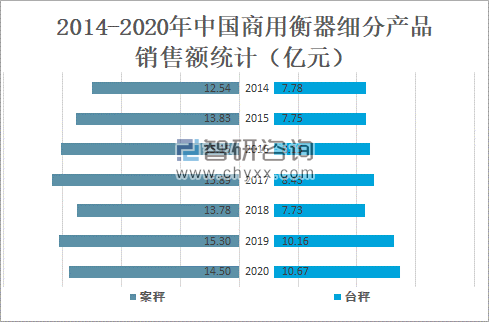 2014-2020年中国商用衡器细分产品销售额统计(亿元)