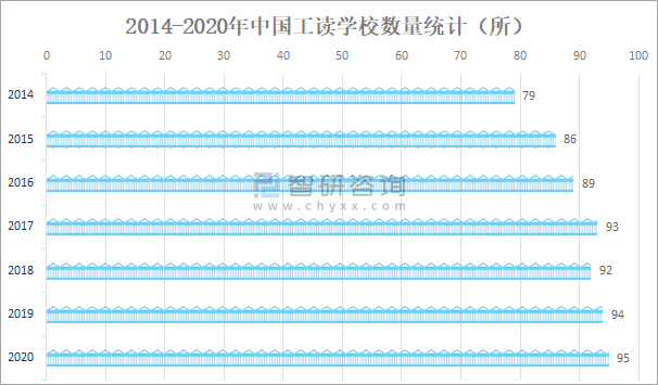 工读学校是中国基础教育中的一种特殊教育形式,也是实施九年义务教育的一种不可缺少的补充,发展好工读学校对于维护社会安定,构建和谐社会具有重要意义,2020年中国共有95所工读学校,较2019年增加了1所,同比增长1.1%。