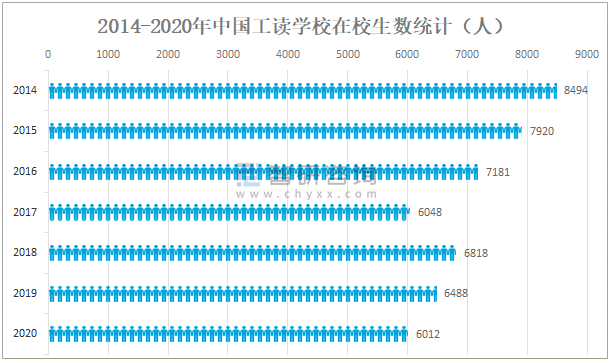 随着中国工读学校入校人数的减少,在校生人数也随之减少,2020年中国工读学校在校生数为6012人,较2019年减少了476人,同比减少7.3%。