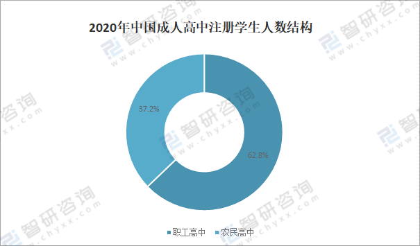 2020年中国成人高中学校数量结构