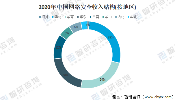 华北、华南以及华东地区是网络安全行业主要收入的来源,但2020年各地对安全投入的力度都有不同程度的提升,西南地区尤其是四川和重庆收入规模扩大比较明显。