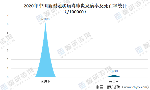 2020年中国新型冠状病毒肺炎发病率为6.2023/10万,死亡率为0.3301/10万。