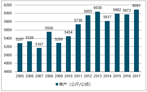 2017年我国玉米播种面积3544.5万公顷,比上年减少132.3万公顷,减幅3.6%;单产6090.8公斤/公顷,比上年增加118公斤/公顷;总产量为2.1589亿吨,比去年减少366.3万吨,降幅为1.7%。