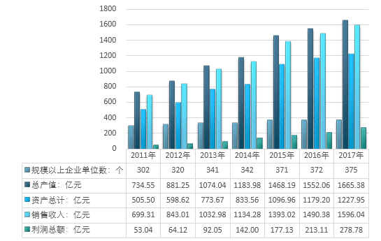 图表:2011-2017年我国化妆品行业资产规模增长趋势图