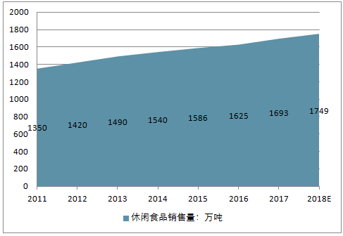2011-2018中国休闲食品销售量走势