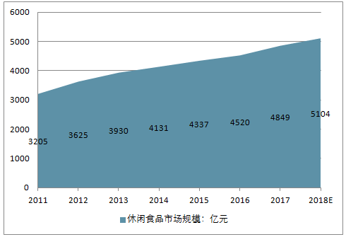2011-2018中国休闲食品市场规模走势