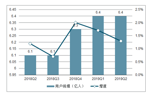 2018Q2-2019Q2中国游戏用户规模及增速