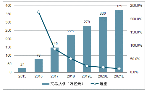 图表252015-2019年中国电子商务交易规模增长趋势图
