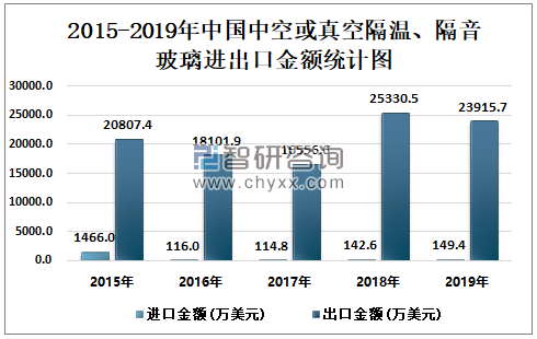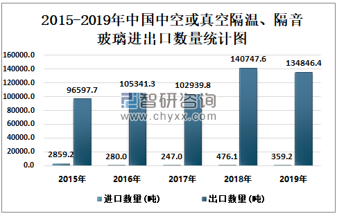 根据中国海关数据显示:2019年1-12月中国中空或真空隔温、隔音玻璃进口数量为359.2吨,进口金额为149.4万美元;2019年1-12月中国中空或真空隔温、隔音玻璃出口数量为134846.4吨,出口金额为23915.7万美元。