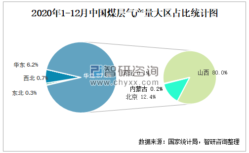 根据国家统计局数据显示:2020年各季度中国煤层气主要集中在华北、西南、华东地区生产;2020年1-12月中国煤层气产量大区分布不均衡,其中华北地区产量最高,特别是山西省贡献了最多产量;2020年1-12月中国煤层气各省市产量top1遥遥领先于其他前9名,山西、北京、贵州等省市产量最多。