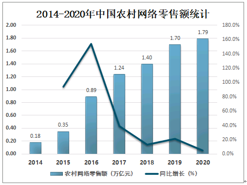 中央一号文件提出全面促进农村消费,利好快递业继续下沉。农村网络零售额达1.79万亿元。根据商务部的数据,2020年,我国农村网络零售额达1.79万亿元,较去年(1.71万亿元)同比+8.9%,2015-2020年农村网络零售额的5年复合增速CAGR为+38.6%。
