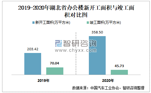 2019-2020年湖北省办公楼新开工面积与竣工面积对比图