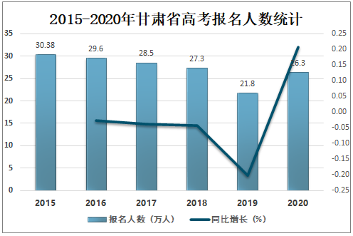 自2016年起甘肃省高考报名人数逐年减少,2020年较2019年增长明显,2020年甘肃省高考报名人数达26.3万人,较2019年增加了4.51万人,同比增长20.71%。