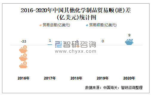 近一年中国其他化学制品进出口贸易总额及贸易顺(逆)差统计表