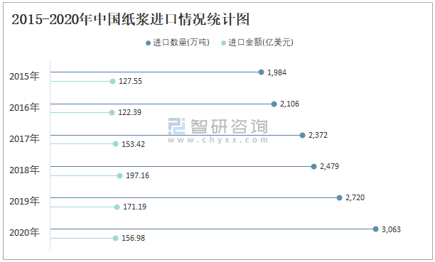 根据中国海关数据显示:2021年8月中国纸浆进口数量为250万吨,同比下降3.5%,进口金额为19.18亿美元,同比增长42.7%,2021年1-8月中国纸浆进口数量为2057万吨,进口金额为134.19亿美元。