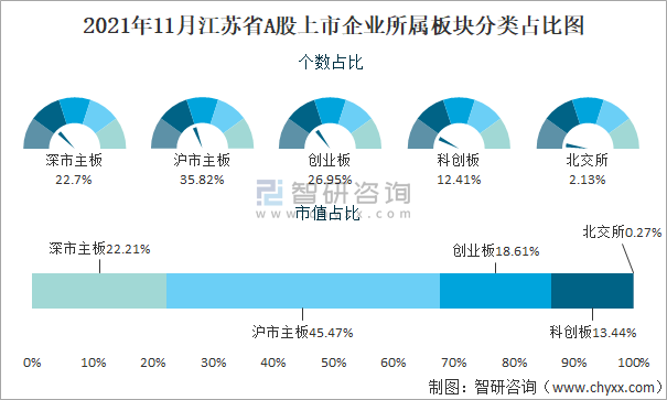 2021年11月江苏省A股上市企业所属板块分类占比图