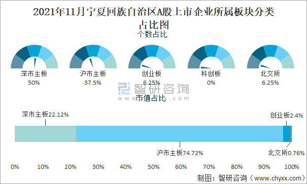2021年11月宁夏回族自治区A股上市企业所属板块分类占比图